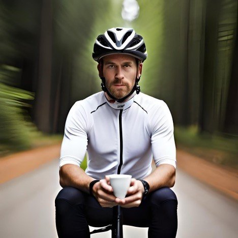 Cyclist with espresso. photorealistic mage generated by BlueWillow AI