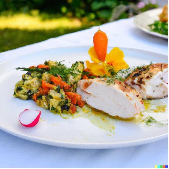 Chicken breasts, when cooked sous-vide, can achieve a level of juiciness you can't get through traditional cooking methods. Pair this with an aromatic herb gremolata, and serve with a side of mixed roasted summer vegetables (think bell peppers, zucchini, cherry tomatoes, and eggplant). For the dairy-allergic guest, you can use olive oil instead of butter when cooking.