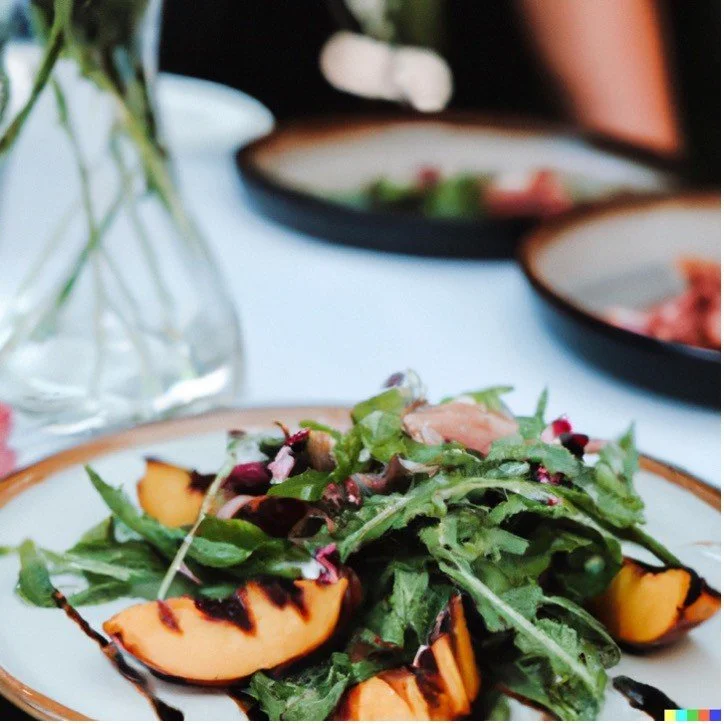 This is a classic summer salad. The grilled peaches add a wonderful smoky-sweetness that complements the salty prosciutto. Mixed with fresh arugula and balsamic vinaigrette, this salad is sure to impress.